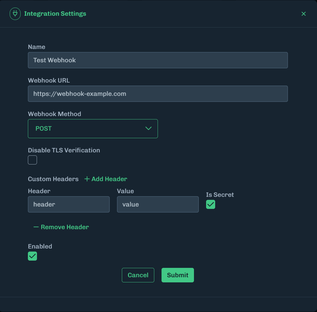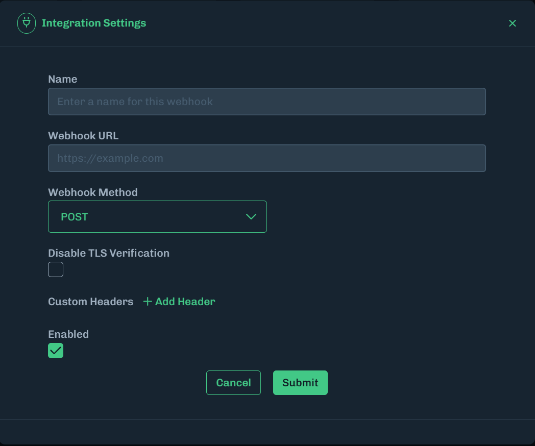 A webhook allows communication between applications by allowing a server to push data to a client when events occur. Using a webhook integration allows HiddenLayer to send new detection data to your application.