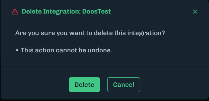 In the Console, on the Admin > Integrations page, delete the webhook.