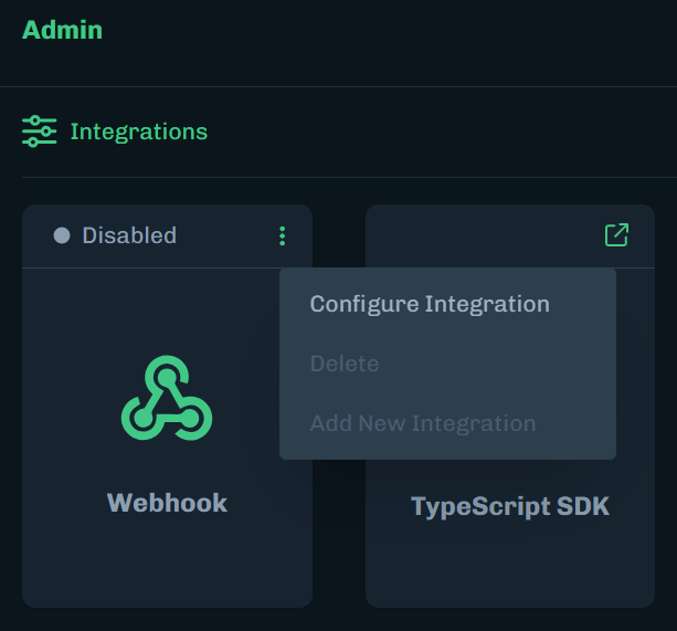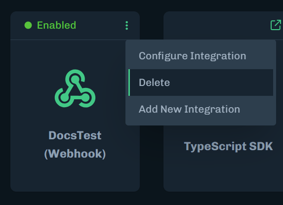 - Click the menu for the webhook (three vertical dots), then select Configure Integration.