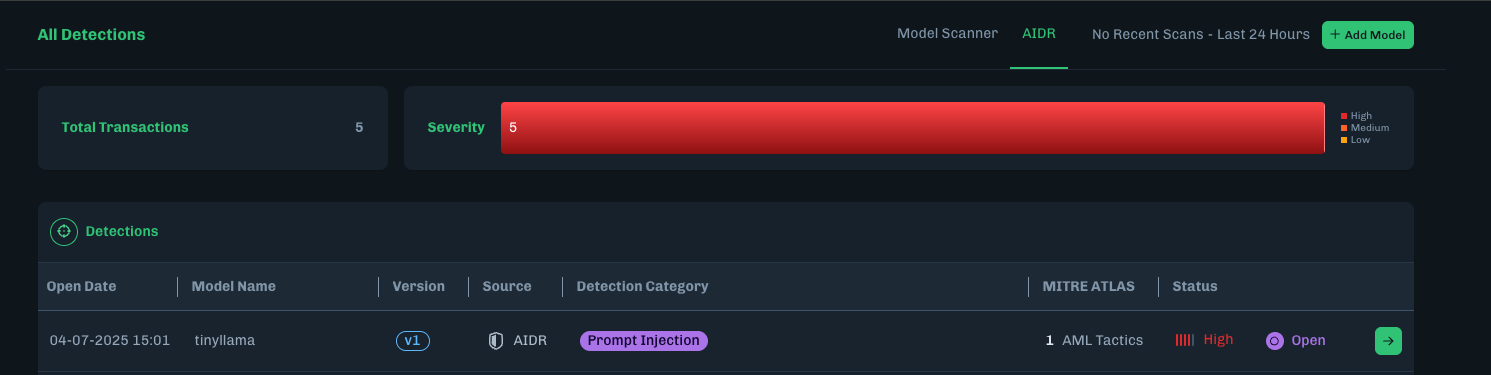 /bin/bash deploy.shOnce deployment is completed, when you run the Python script to send a request to the LLM proxy, you should be able to see the detection results in the cloud console within your tenant.