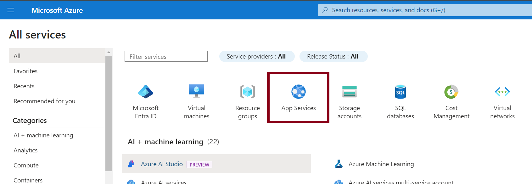 Go to the App Services page.