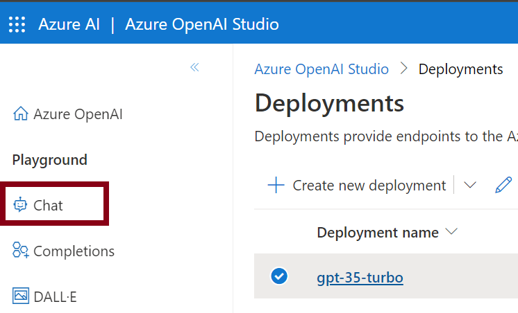 This will bring you to the Azure OpenAI Studio Deployments page.