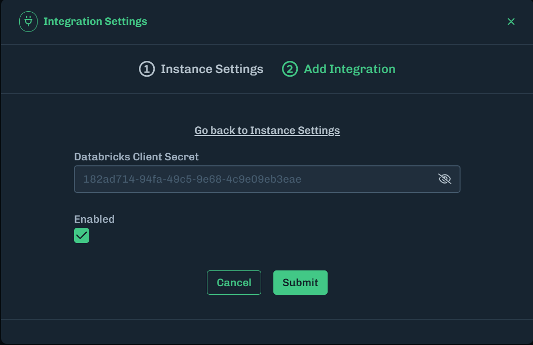 Make sure Enabled is selected if you want to enable this integration at this time. Deselect Enabled if you want to enable this integration at a later time.