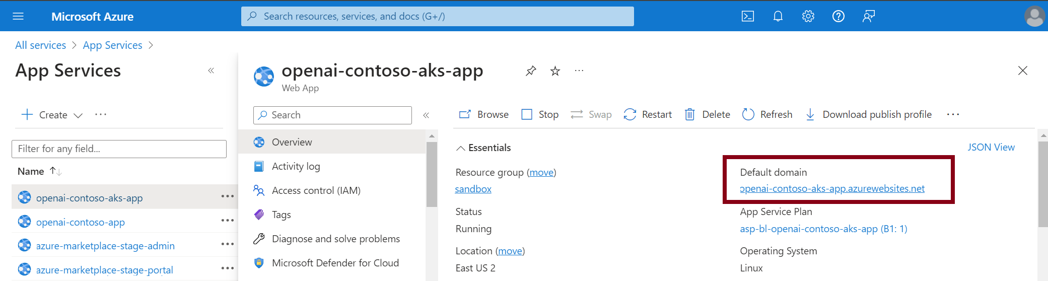 Once the Web application is deployed, you should be able to find the app service using the name you provided.