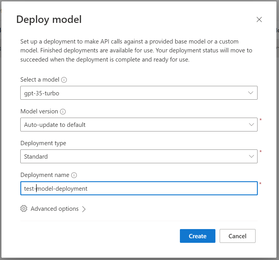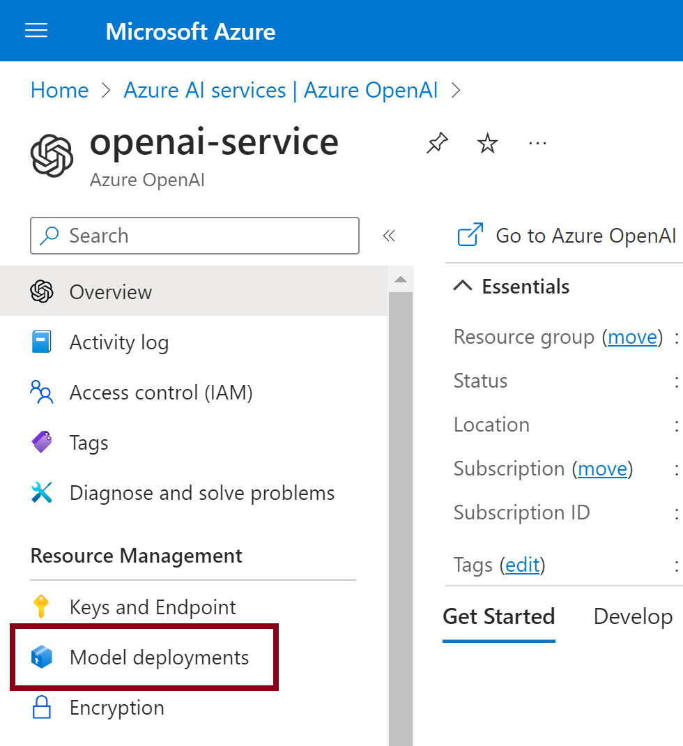 At this point you have deployed an Azure OpenAI Service. From the OpenAI Service resource in the portal:
